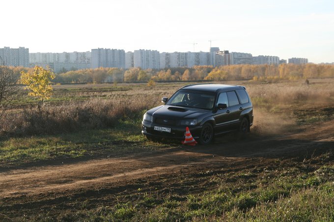 Понял, что все таки форь, даже кросс или стоковый СТИ не для асфальтовых гонок - разрыв с импрезами, которые катались после нас был 10 секунд - это пропасть! У нас между лучшим результатом на СТИ форике и самым медленным атмосферником разрыв был всего 7 секунд... Форик припадает в повороте на внешнее колесо так, что со стороны даже страшно. В внутри страшно когда из поворота в одну сторону резко качаешь в поворот в другую (ну или пытаешься поймать машину в слишком крутом заносе) - перекат машины с боку на бок настолько крут и широк, что вышибает водителя из колеи и машина теряет управление - резко рулить на скорости на таком монстре опасно!