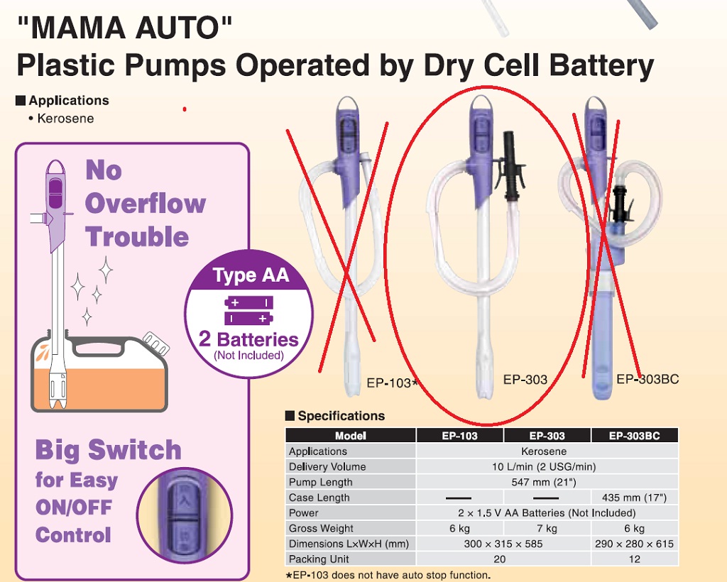 питается от двух батареек размера АА , качает 10 литров в минуту, имеет устройство отключения при переливе