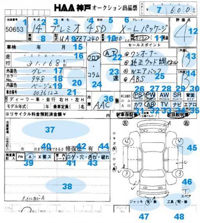 Расшифровка аукционного листа HAA Аукционная площадка HAA Kobe (Hyogo Automobile Auction)