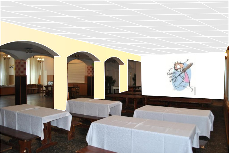 Обязательные условия проекта: использование только негорючих материалов, желательно сокращение затрат на ремонтные работы, помещение столовой должно быть многофункциональным (прием пищи сотрудниками и студентами колледжа, проведение банкетов, так же поминальных обедов).
