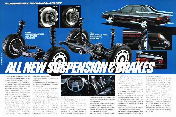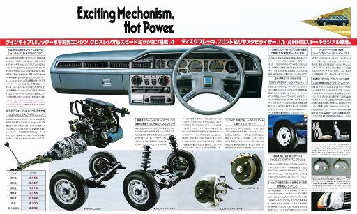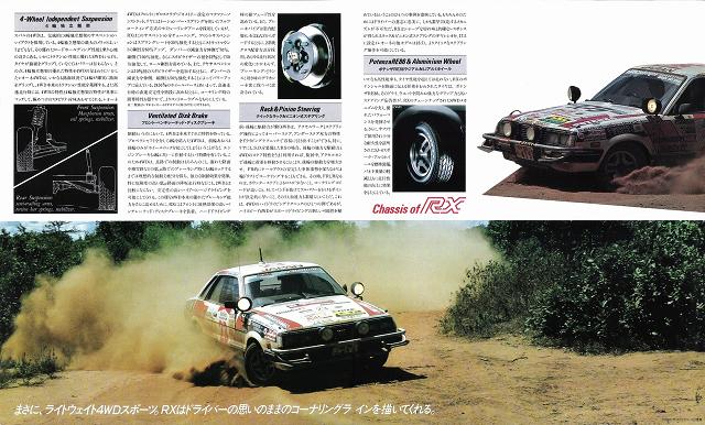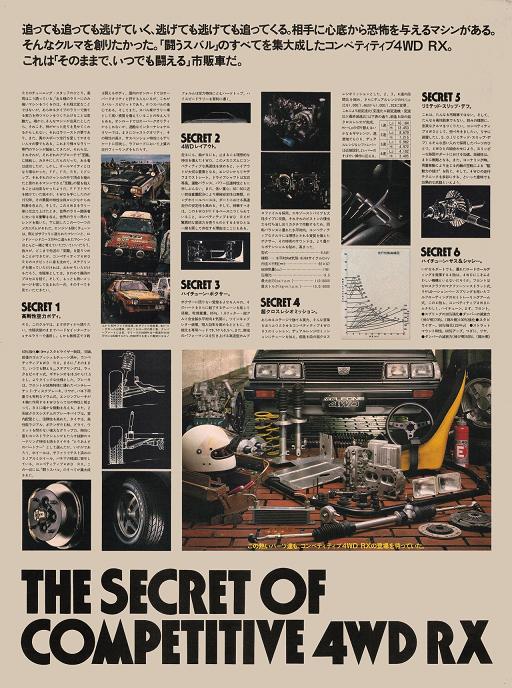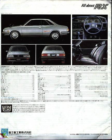 Однако вернемся в середину 80х годов. Subaru Leone RX стоял особняком из всей модельной линейки компании. Он выпускался только в кузовах седан и 3х дверное купе (так называл его производитель), отличался не самым богатым салоном (на него не ставилась электронная панель приборов, климатконтроль, бортовой компьютер, далеко не всегда ставились электростеклоподьемники), однако он обладал кое-чем другим. На нем в стандарте устанавливался задний дифференциал повышенного трения, более жесткая плотная подвеска, обязательно полный привод с понижающим рядом (с 86 года – постоянный полный с понижающим рядом и дифлоком), на панели приборов обязательно стояли дополнительный датчик давления масла и вольтметр. А также имели занятный рисунок на сиденьях и дверных картах в виде шашечек =) хотя на некоторых машинах и то и другое было кожаным. Также для этой модели предлагался набор деталей с руководством для подготовки машины к ралли. Этот набор включал в себя собственно руководство, детали двигателя, усиляющие детали кузова, компьютер впрыска а также два набора подвески (для грунтовых и асфальтовых ралли). С этим набором любой желающий мог подготовить свой обычный RX к ралли (мощность при этом достигала 180 л.с.).