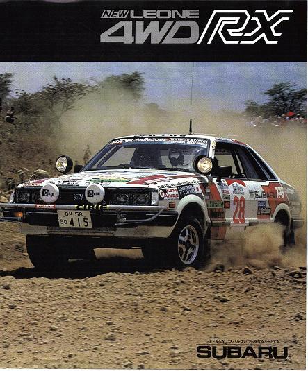 Команда Subaru Rally Team Japan под руководством Нориюки Кодзеки (основатель Subaru Tecnica International STI) использовала Subaru Leone купе, седан DL и RX турбо в Мировом Чемпионате по Ралли с 1980 по 1989 год в нескольких гонках в каждом сезоне . Водителями в различных гонках были такие гонщики как Ари Ватанен, Пер Экланд, Шекхар Мета, Майк Киркланд, Поссум Бёрни и Гарольд Демат. Майк Киркланд финишировал шестым в общем зачёте и выиграл в своем классе по группе А в Ралли Сафари в 1986м году. В этом году Subaru была единственным производителем, который использовал полный привод и турбонаддув вместе. Subaru заменила раллийную модель на Legacy RS в течении 1990-1992 годов и впервые приняла участие в полном гоночном сезоне Мирового Чемпионата по Ралли с аналогичной моделью в 1993м году.