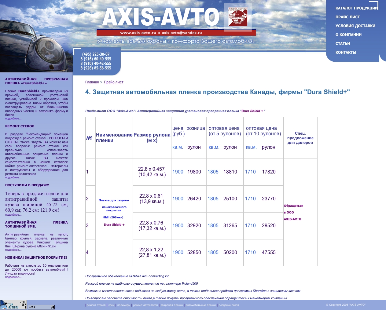 Сегодня был у ребят по указанному телефону. Бронировочная пленка - 2 руб. кв.см. защитная (она тоньше) 1.5 рубля.