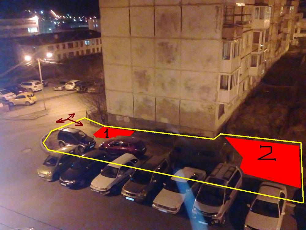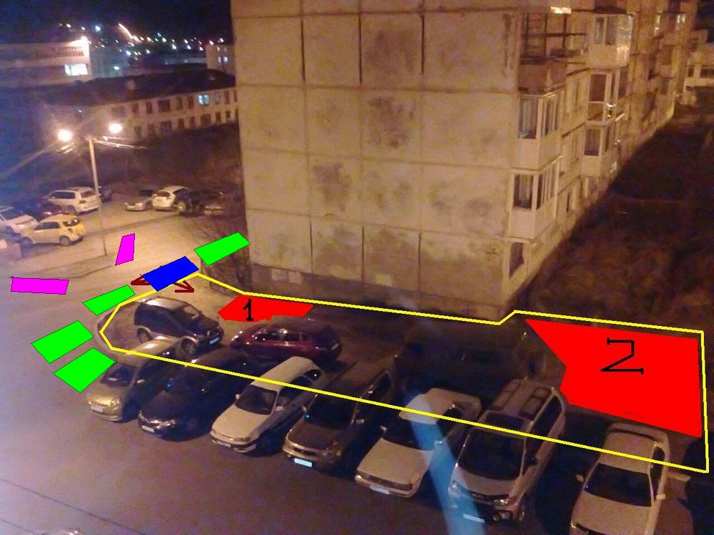 - фиолетовым цветом, если не будет авто на зеленых/синих местах, т.е. если мой припаркованный авто создаст помехи...