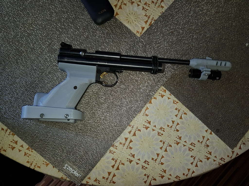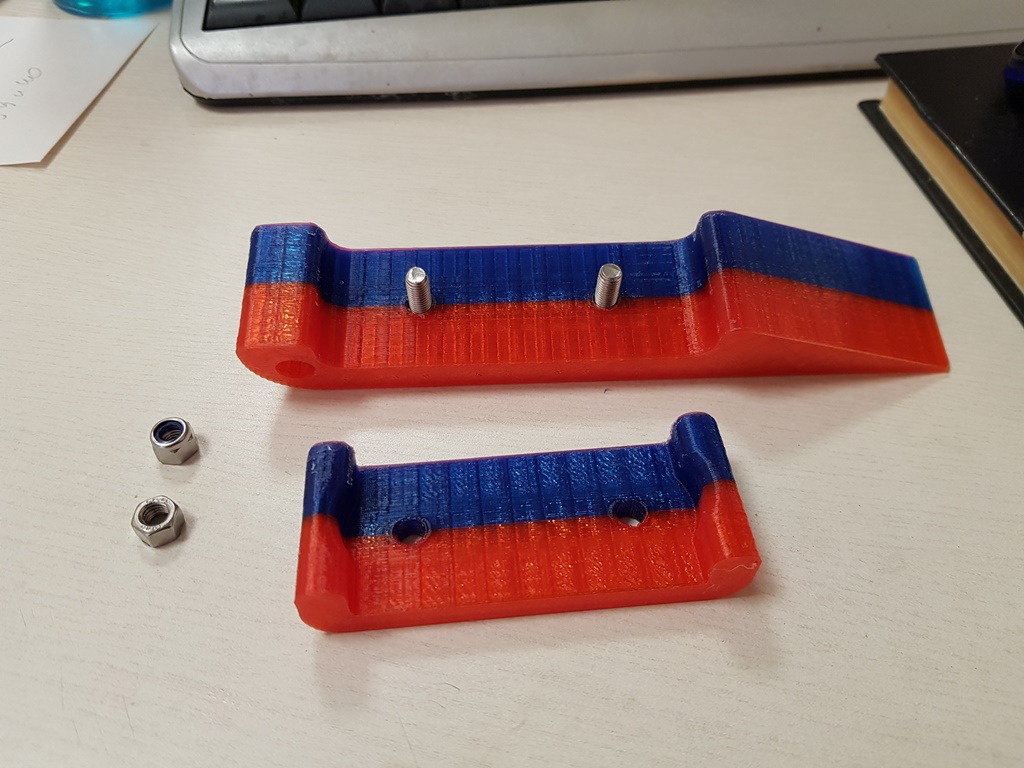 Есть модели ручек...такие, сякие и вообще всякие, но как-то не нашлось такой, которая крепится под шнурок... По большому счёту пофиг, деталь простая даже для меня, ламера в моделировании...Сел за ноут, потыкал кнопки, повозюкал мышкой и деталь (две) пошла в печать. Сорок восемь минут и принтер позвонил,что всё готово...Детальки встали на место ничуть не хуже родных...