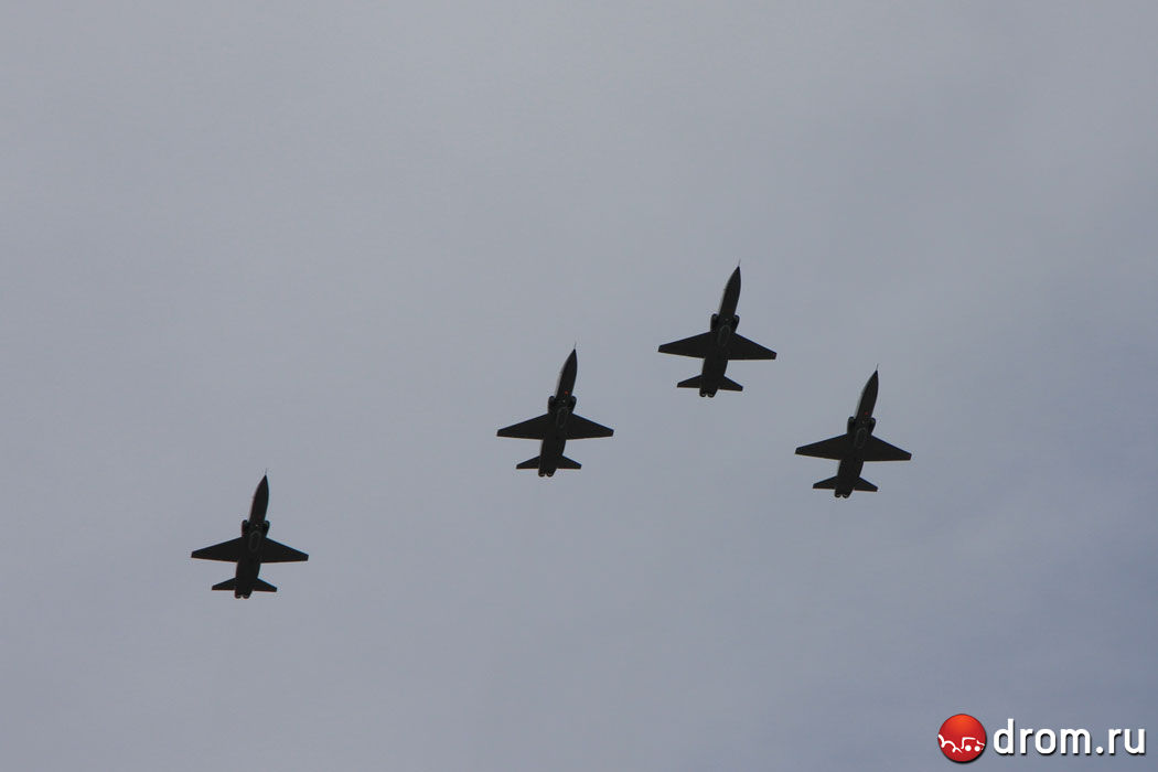 В небе опять пролетает группа из 4-х самолетов. Через несколько дней самолеты будут летать в небе над Спидвеем в Лас Вегасе. Похоже, это популярный у американцев вид повышения престижа мероприятия.