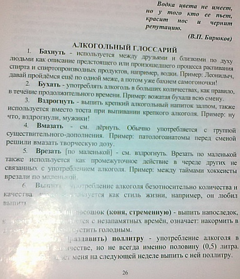 «Водка, когда ее пьют, ума не добавляет и не забирает, она проверяет, есть ли он», – пишет автор генерал-майор милиции Василий Бирюков, начальник Крымского юридического института.