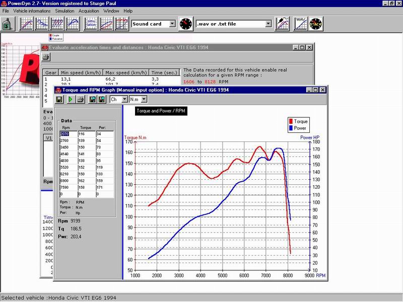 Да нормально там все рассчитывает! Вон ребзя делали тестовые замеры по проге на Цивике, потом поехали на Дино агрегат мерить, погрешность составила не более 7%, с учетом того что они неправильно указали температуру воздуха, которая дала погрешность порядка 1-2%, вот вам и искомые 5-6%. Короче ну реально там ежели разобраться все арбайтен! Снимая скорость оборотов, т.е. с каким ускорением раскручивается движок на заданной передаче коробки, передаточные числа которой внесены, сие и есть динамика разгона, по ней и вычисляется усилие с которым вращают колеса заданного диаметра, то есть усилие через плечо! Да конечно не хватает для точности G сенсора! Скажу так, рассчитать ускорение это и в правду простая задачка по физике, а вот найти искомые величины минуя всевозможные потери мощности, ведь нас все таки ФАКТическая мощность ДВС интересует!!!!