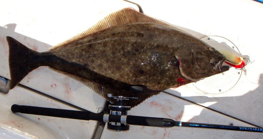 Товарищ ловит палтуса на n-десят килограмм (порядка 120 см в длину).